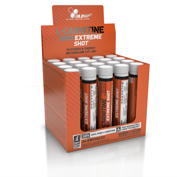 Το L-CARNITINE 3000 EXTREME SHOT ™ προσφέρει τη μεγαλύτερη δόση L-καρνιτίνης που διατίθεται στην πολωνική αγορά. Η επίδραση της L-καρνιτίνης ενισχύεται με πρόσθετη βιταμίνη Β6, η οποία επιτρέπει την συνεργιστική δράση της L-καρνιτίνης στις διαδικασίες παραγωγής ενέργειας κατά τη διάρκεια εντατικής φυσικής προσπάθειας. Η χρήση του Liquid Technology, αυξάνει την ταχύτητα απορρόφησης των μοναδικών συστατικών του παρασκευάσματος. Η αμπούλα καθιστά δυνατή την άμεση απορρόφηση της L-καρνιτίνης και της βιταμίνης B6 στην κυκλοφορία του αίματος, χωρίς την καθυστέρηση που χαρακτηρίζει τα δισκία ή τις κάψουλες. Το L-CARNITINE 3000 EXTREME SHOT ™ εκπλήσσει όχι μόνο με την αποτελεσματικότητά του αλλά και με τις γεύσεις του – κεράσι και πορτοκάλι.