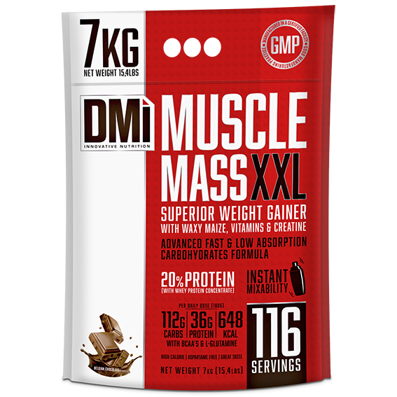 MUSCLE MASS XXL effectively combines carbohydrates to increase energy, high biological value proteins to promote the muscle mass gaining and tissue regeneration after a high intensity workout. Carbohydrates are stored in the form of glycogen and helps to delay fatigue and increase energy levels.