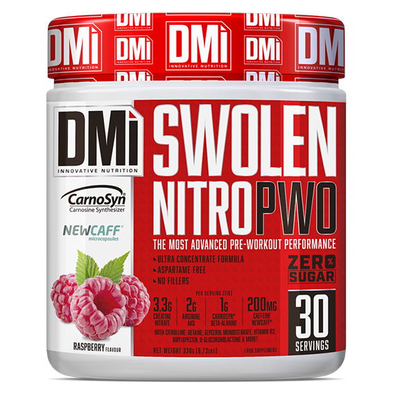 SWOLEN NITRO PWO is the most innovative and advanced pre-workout formula on the market based on Creatine nitrate, Arginine AKG, Beta-Alanine (Carnosyn® Beta-Alanine), Citrulline malate, Betaine anhydrous, Glycerol monostearate, Amylopectin, Caffeine (NewCaff ® microcapsules), D-Glucoronolactone, Vitamin C, Vitamin B3 and Black pepper extract (Bioperine®).